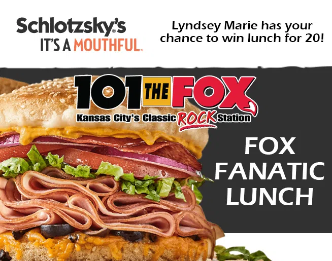 101 The Fox and Schlotzsky’s want to reward our hard-working listeners! Tune in with Lyndsey Marie weekdays for your chance to text the station and enter to win a Fox Fanatic lunch from Schlotzsky’s delivered to your workplace! Schlotzsky’s Catering.. it’s a mouthful!