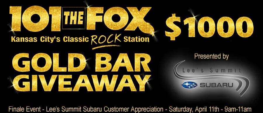 101 The Fox and Lee’s Summit Subaru are teaming up for the Ultimate Customer Appreciation Event — and we’re giving away a $1,000 Gold Bar!